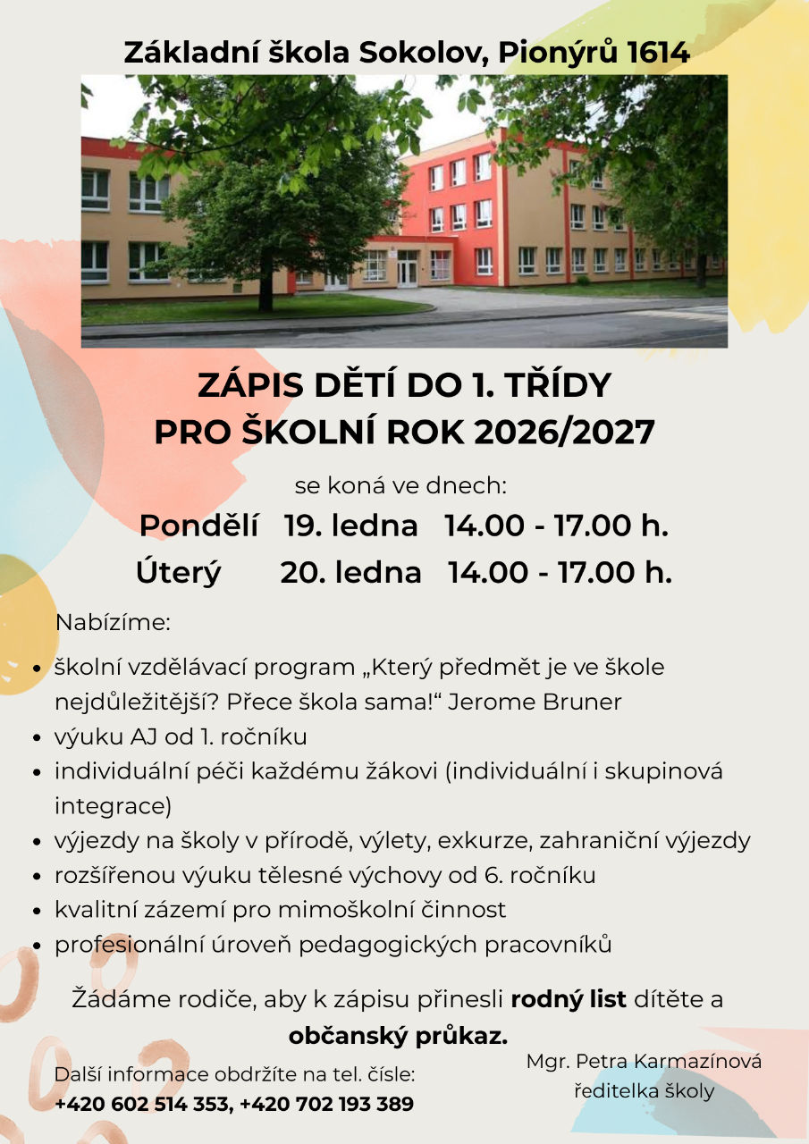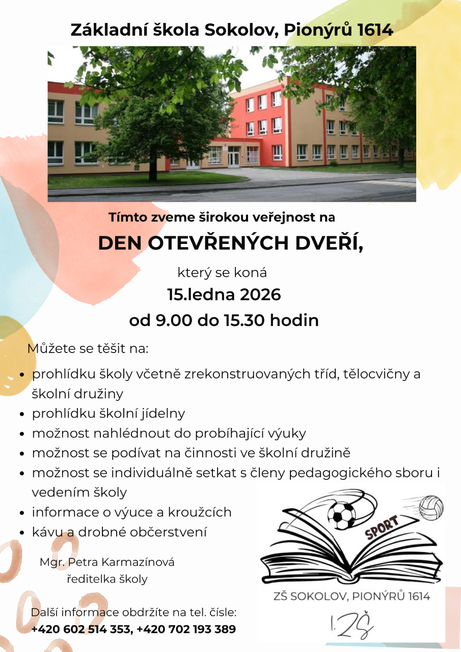 Den otevřených dveří + Zápis do základní školy Sokolov, Pionýrů 1614
