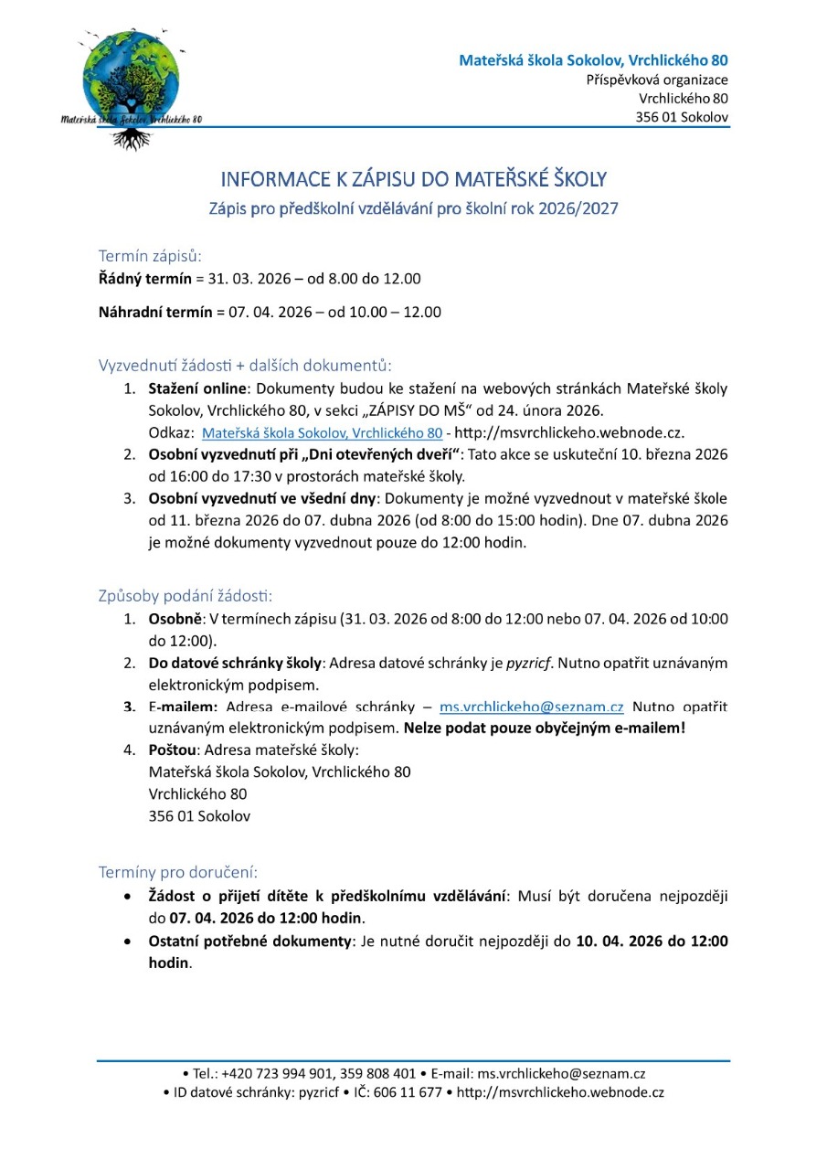 ZÁPISY DO MATEŘSKÉ ŠKOLY
